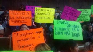 AS/. Tlaxcala, Tlax; a 17 de enero 2019.- Día de protesta en el Congreso Local de Tlaxcala por parte integrantes de los Sindicatos “7 de Mayo”, “Justo Sierra”, “Mártires de 1910”, “Pensionados y Jubilados del Gobierno del Estado, Municipios y Organismos Descentralizados del 7 de Mayo”, Profesores de la “Sección 55”, quienes ingresaron por la fuerza al pleno de sesiones para ser escuchados en sus demandas basadas en la no reducción de sus prestaciones laborales por el recorte al presupuesto en salud y educación del 2019.