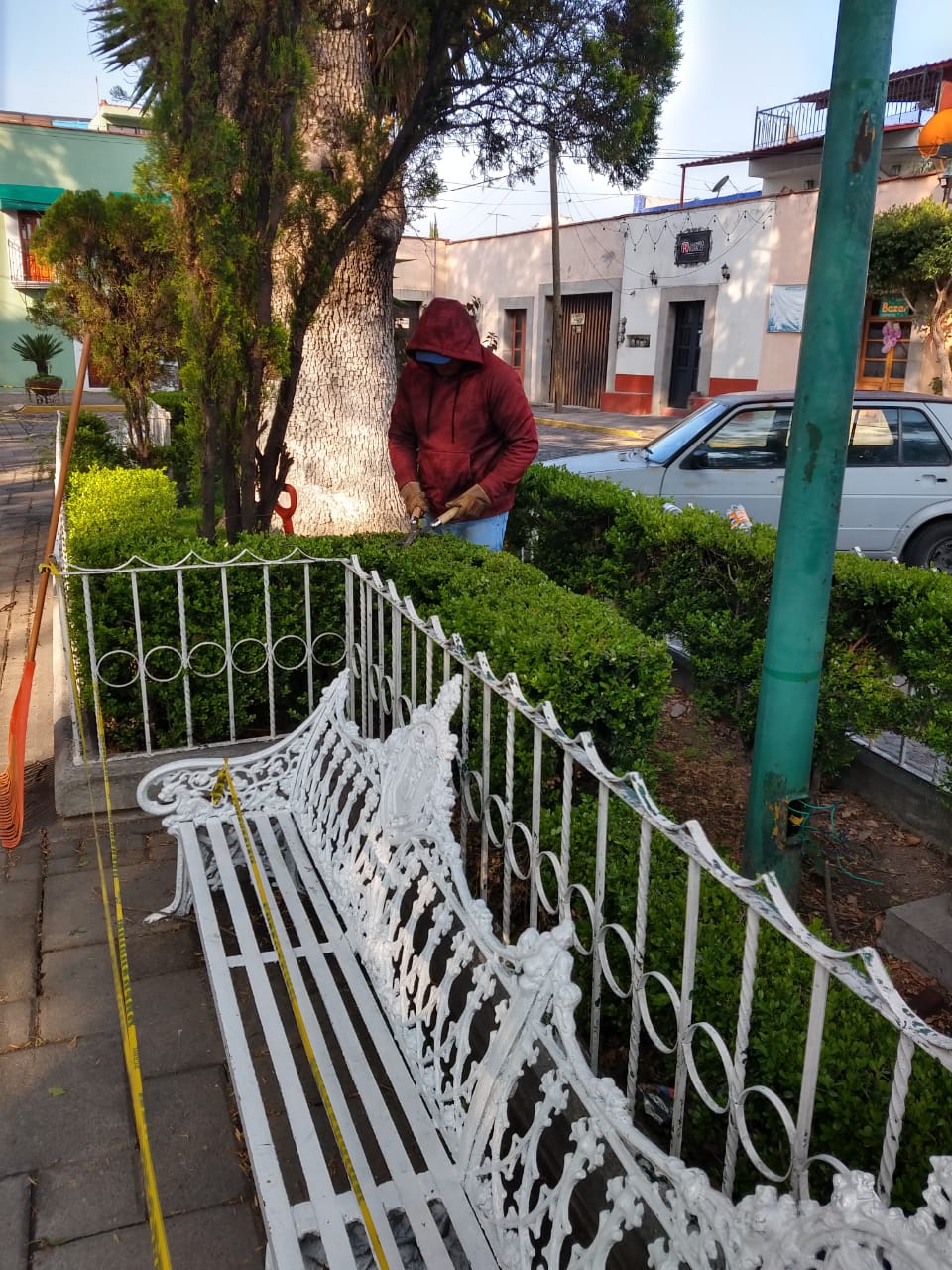 Apetatitlán, Tlax.- El personal de la dirección de Servicios Municipales del Ayuntamiento de Apetatitlán, continúan realizando trabajos de mejora de imagen urbana en la cabecera municipal, con la finalidad de embellecer los espacios públicos y a su vez, mantenerlos limpios.