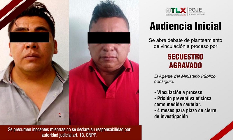 De esta manera, durante la audiencia inicial el Representante Social formuló la imputación en contra de Ricardo N., y José Ángel N., quienes de acuerdo con datos de prueba que obran en la Carpeta de Investigación recabada por la Fiscalía Especializada en el Combate al Delito de Secuestro (FECDS) adscrita a la Unidad de Investigación de Delitos de Alto Impacto (UIDAI), participaron en secuestros perpetrados en Apizaco, Tlaxco y Xaltocan.