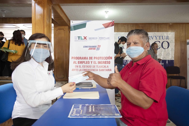 Tlaxcala, Tlax; a 26 de mayo 2020.- Como parte del Programa Emergente de Apoyo a la Economía Estatal ante la emergencia sanitaria de Covid-19, la Secretaría de Desarrollo Económico (Sedeco) entregó créditos a Micro, Pequeñas y Medianas Empresas (Mipymes) de Apizaco.