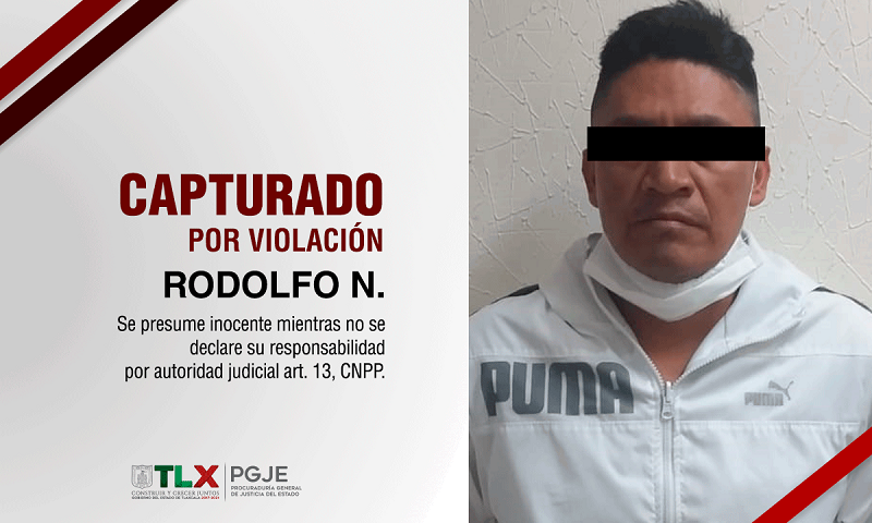 Tlaxcala, Tlax, a 04 de agosto 2020.- La Procuraduría General de Justicia del Estado (PGJE) a través de la Policía de Investigación logró la captura de Rodolfo N., quien contaba con una orden de aprehensión por el delito de violación en agravio de su hijastra.