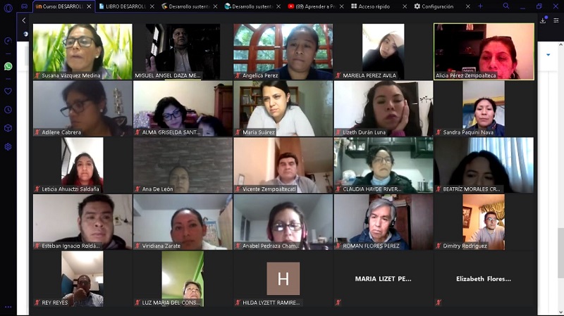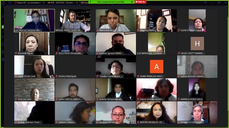 Tlaxcala, Tlax; a 21 de octubre 2020.-Docentes del Colegio de Bachilleres del Estado de Tlaxcala y Telebachilleratos Comunitarios (COBAT-TBC), participan en la capacitación sobre el manejo de la plataforma MOODLE, que imparte la Dirección General de este subsistema.