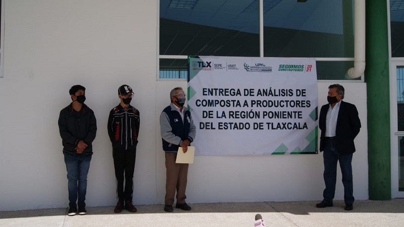 Tlaxcala, Tlax; a 18 de marzo 2021.- La Universidad Politécnica de Tlaxcala Región Poniente (Uptrep) entregó a productores del municipio de Tecopilco los resultados del análisis de composta que realizó en uno de sus laboratorios, con el propósito de conocer la cantidad de nutrientes que posee y aprovecharlos de mejor manera en los diversos cultivos.
