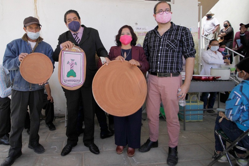 Acompañado de la presidenta de comunidad, Celia Montiel Serrano, y del Coordinador de Cultura del municipio de Tzompantepec, Luis Felipe de Jesús Montiel Vázquez iniciaron el programa ante alrededor de 30 artesanos.