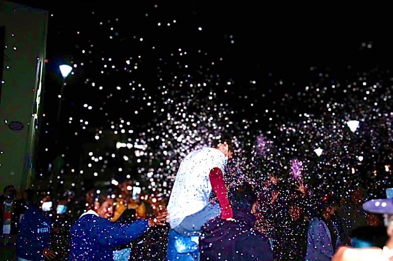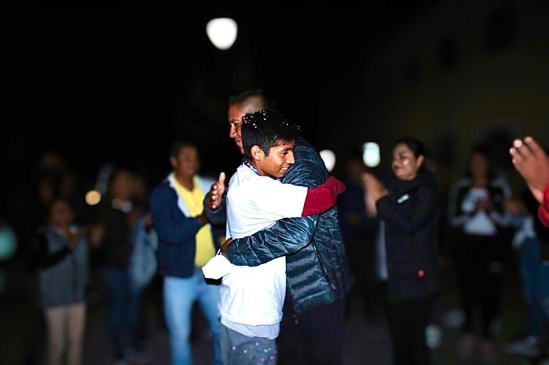 Tlaxcala, Tlax; a 26 de Octubre 2021.- Fue alrededor de las 10:15pm cuando el joven atleta arribó a su natal Tlaltelulco, en medio del aplausos, porras, carteles de bienvenida y sonido de juegos artificial, lo esperaban en el kiosco del Municipio.
