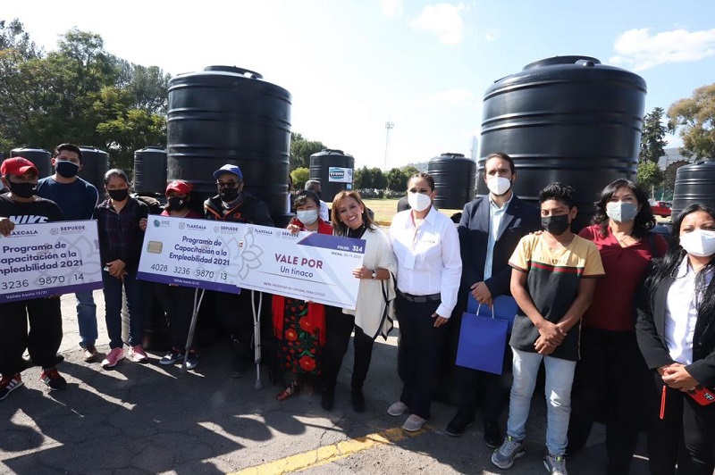 entrega de tinacos y muebles de baño, con lo que cientos de familias tlaxcaltecas