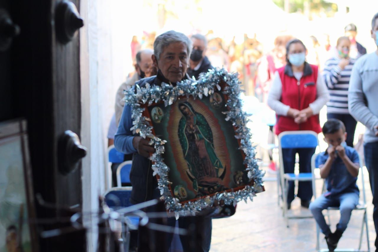 Este medio día cientos de feligreses se dieron cita en la basílica de Ocotlán para presenciar la misa de las 12 en honor a la virgen de Guadalupe y celebrar otro aniversario de la aparición de la virgen en el cerro del Tepeyac. Imagen: Alain Hernández / NierikaImages