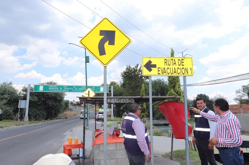 A su vez, el titular de la SMyT, Juan Tapia Pelcastre se comprometió a apoyar con las adecuaciones necesarias en infraestructura o señalética para que la población se encuentre bien informada y conozca los puntos de reunión, los caminos y refugios para su salvaguarda.