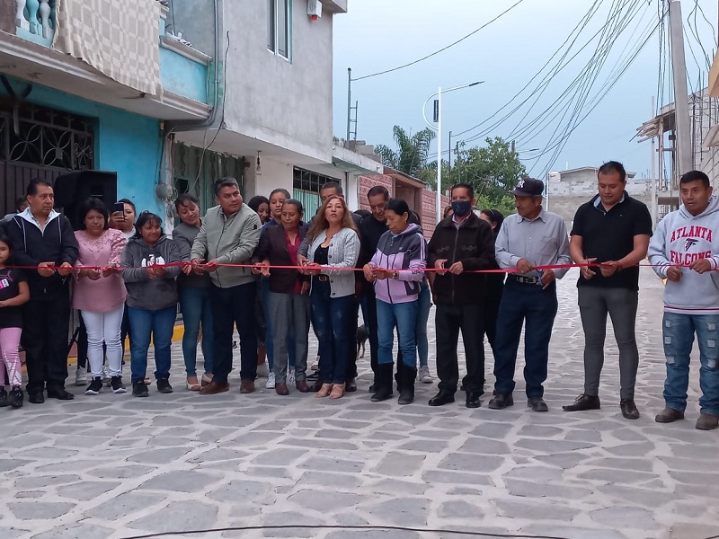 TL/ La tarde de este viernes el alcalde de Axocomanitla, Oracio Tuxpan Sánchez acompañado de integrantes de su cabildo realizó la reapertura e inauguración de la calle 5 de mayo donde se colocó pavimento de concreto, guarniciones, banquetas, rehabilitación de la red de agua potable y nuevas luminarias.