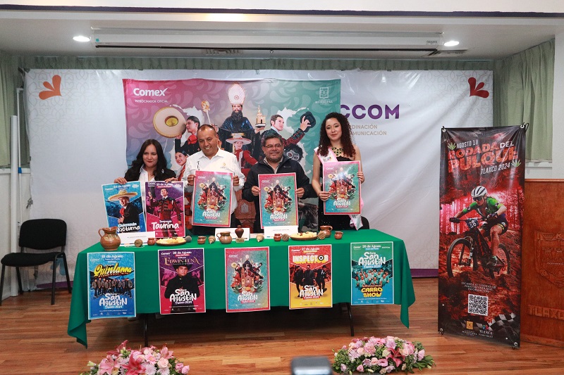 Armando Flores, presidente municipal de Tlaxco, Tlaxcala, realizó esta mañana, en rueda de prensa, la presentación del cartel oficial de la feria de San Agustín Tlaxco a realizarse el próximo 18 al 28 de agosto en el pueblo mágico del norte del estado. Imagen: Cristihan Martínez / Nierika Images