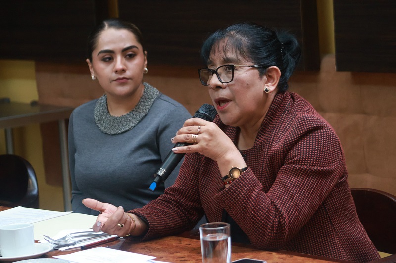 María Teresa Meneses, secretaria general de la Sección 55 del Sindicato Nacional de Trabajadores de la Educación (SNTE), ofreció está mañana una rueda de prensa para hablar sobre los aumentos salariales y la problemática con algunas prestaciones laborales y servicios médicos hacia los agremiados. Imagen: Cristihan Martínez / Nierika Images