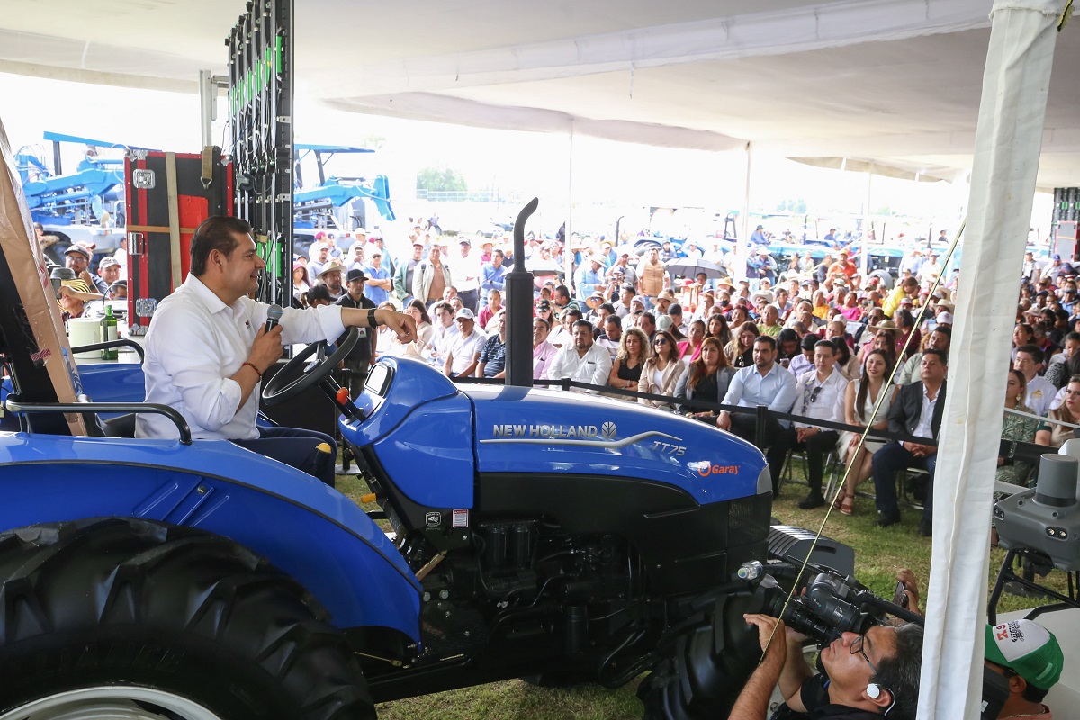 SAN MARTÍN TEXMELUCAN, Pue.- Con la visión de generar seguridad en el campo para el bienestar de las familias, el Gobernador de Estado, Alejandro Armenta, encabezó la entrega de un módulo de maquinaria en la región como parte de los 27 que se entregan en la entidad y que lograrán que este año se siembren 150 mil hectáreas que no producían.