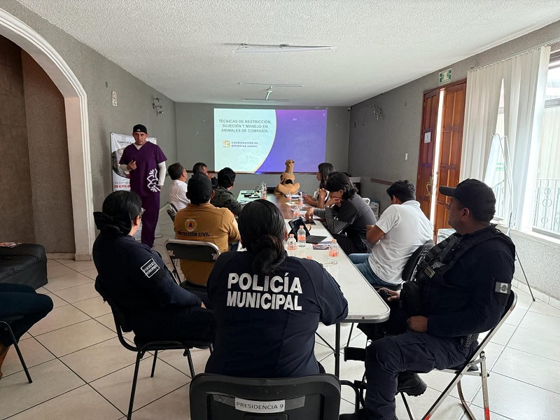 Papalotla, Tlax; 27 de agosto 2025.- Como parte de su compromiso por mejorar el bienestar animal y procurar una sociedad más justa que atiende la salud pública, diversas áreas del Gobierno Municipal de Papalotla participaron en una capacitación integral para mejorar el cuidado animal.