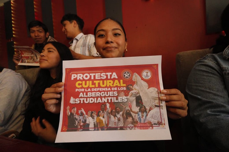 María Fernanda Vásquez, responsable en Tlaxcala, de la Federación Nacional de Estudiantes Revolucionarios, “Rafael Ramírez”, encabezó esta mañana una rueda de prensa, para informar que el próximo 30 de agosto realizaran una manifestación por las calles de la capital como a poyo a la lucha de sus compañeros en el estado de Oaxaca. Imagen: Cristihan Martínez / Nierika Images