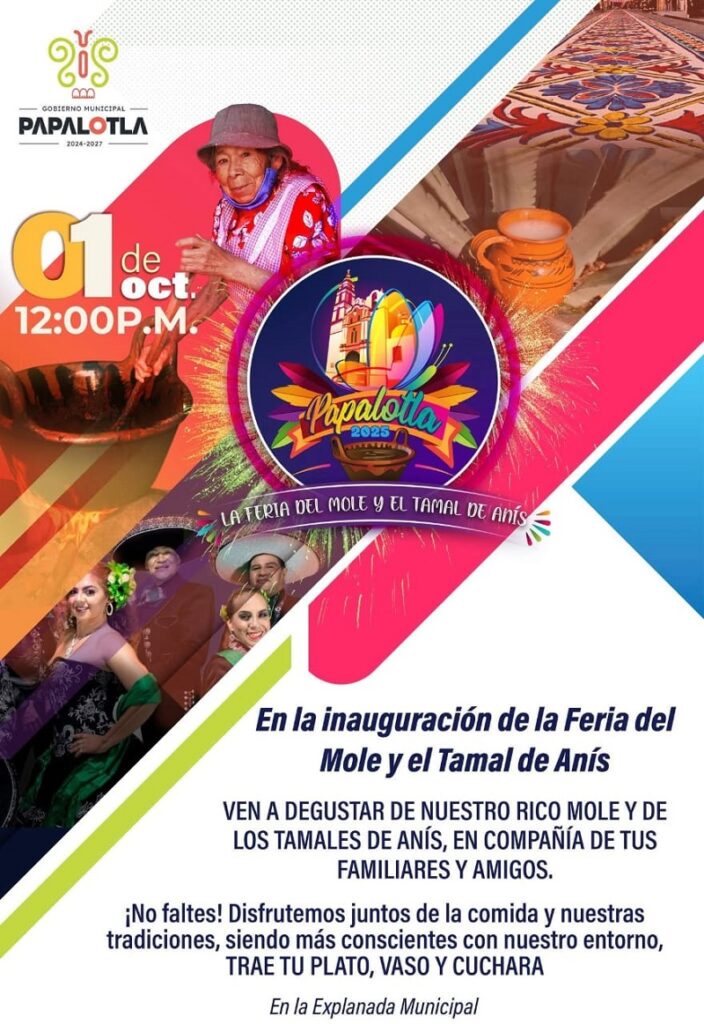 Papalotla, Tlax; a 26 de septiembre 2025.- Todo está listo para la inauguración de la Feria del Mole y el Tamal de Anís Papalotla 2025, el proximo primero de octubre, la cual que promete ser una gran fiesta gastronómica y cultural que reunirá a familias y visitantes en la Explanada Municipal.
