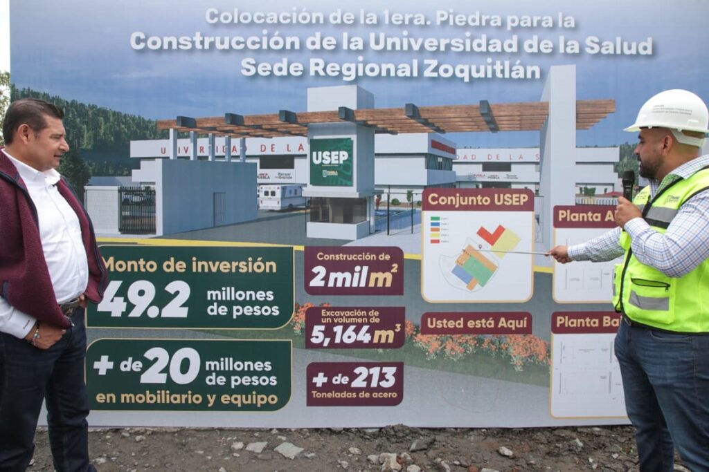 Con el inicio de la construcción del nuevo campus de la Universidad de la Salud en Zoquitlán, el gobierno del Estado que encabeza Alejandro Armenta, impulsa con visión humanista, y en sintonía con la directriz del gobierno de México, que preside la doctora Claudia Sheinbaum, el desarrollo educativo de las y los jóvenes de municipios con mayor pobreza y rezago.