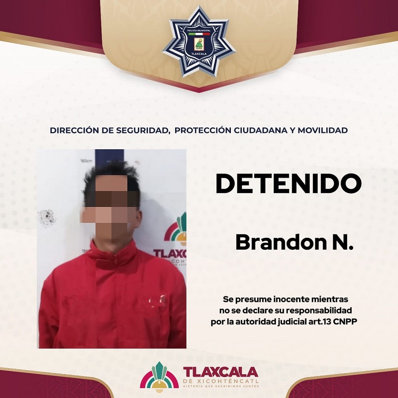 La persona señalada, identificada como Brandon N, de 28 años de edad, fue asegurada y remitida al Juzgado Municipal, luego de que reportara una actitud alterada durante la intervención de los oficiales.