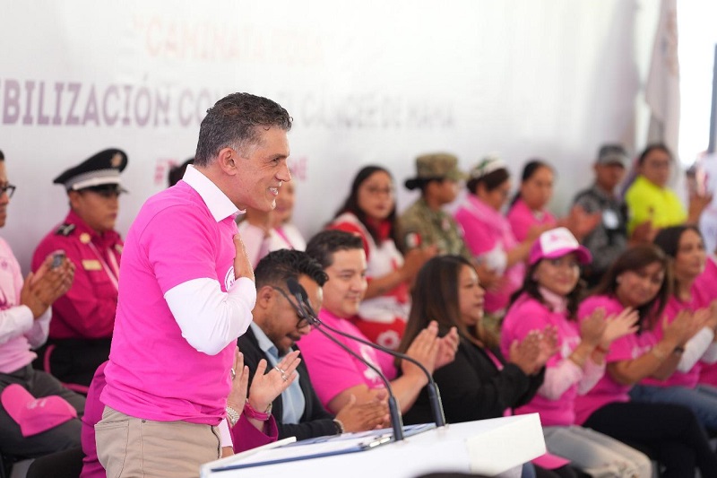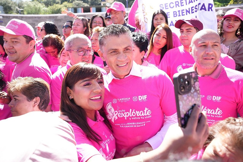 Tlaxcala, Tlax; a 21 de octubre 2025.- El presidente municipal de Tlaxcala, Alfonso Sánchez García, participó en la Caminata Rosa organizada por el Sistema Estatal para el Desarrollo Integral de la Familia (SEDIF) en Tlaxcala, en el marco del mes de sensibilización contra el cáncer de mama. Durante el evento, hizo un llamado a las mujeres de la capital a realizarse chequeos médicos de manera oportuna, recordando que la prevención puede salvar vidas.