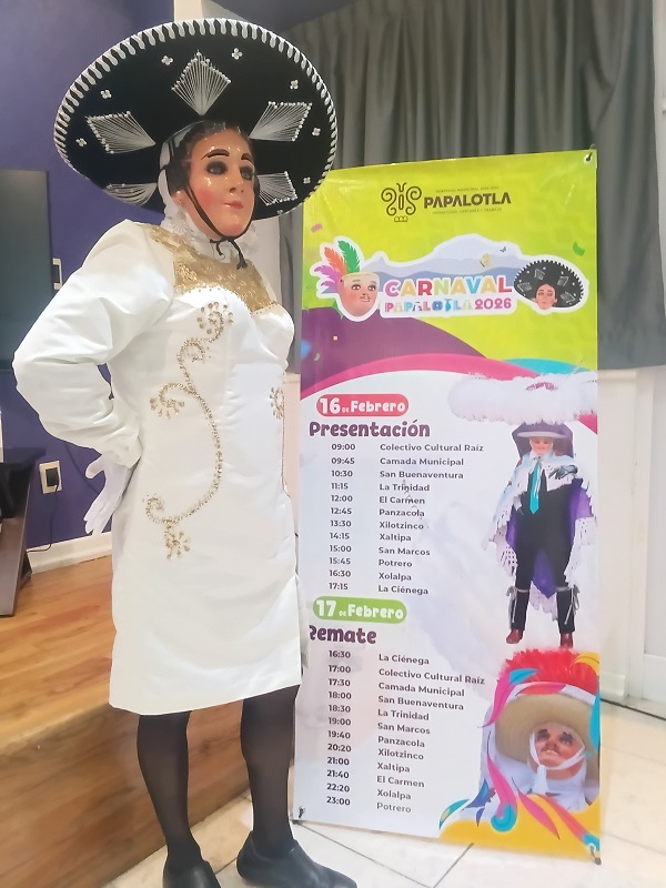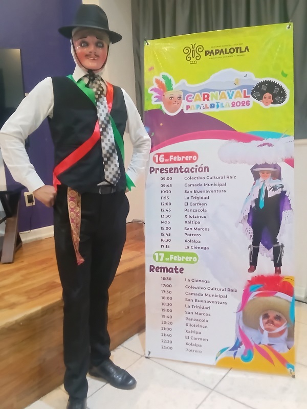 TL/ Tlaxcala, Tlax; a 04 de febrero 2026.- En  conferencia de prensa celebrada en la capital del estado de Tlaxcala, este  miércoles el alcalde de Papalotla  Dr. Sergio  Lara Muñoz,  presentó el Cartel de “Carnaval 2026” a celebrarse del 15 al 17 de febrero en esta demarcación,  con la presentación de 13 cuadrillas de los barrios, colonias y el pueblo de San Marcos Contla.
