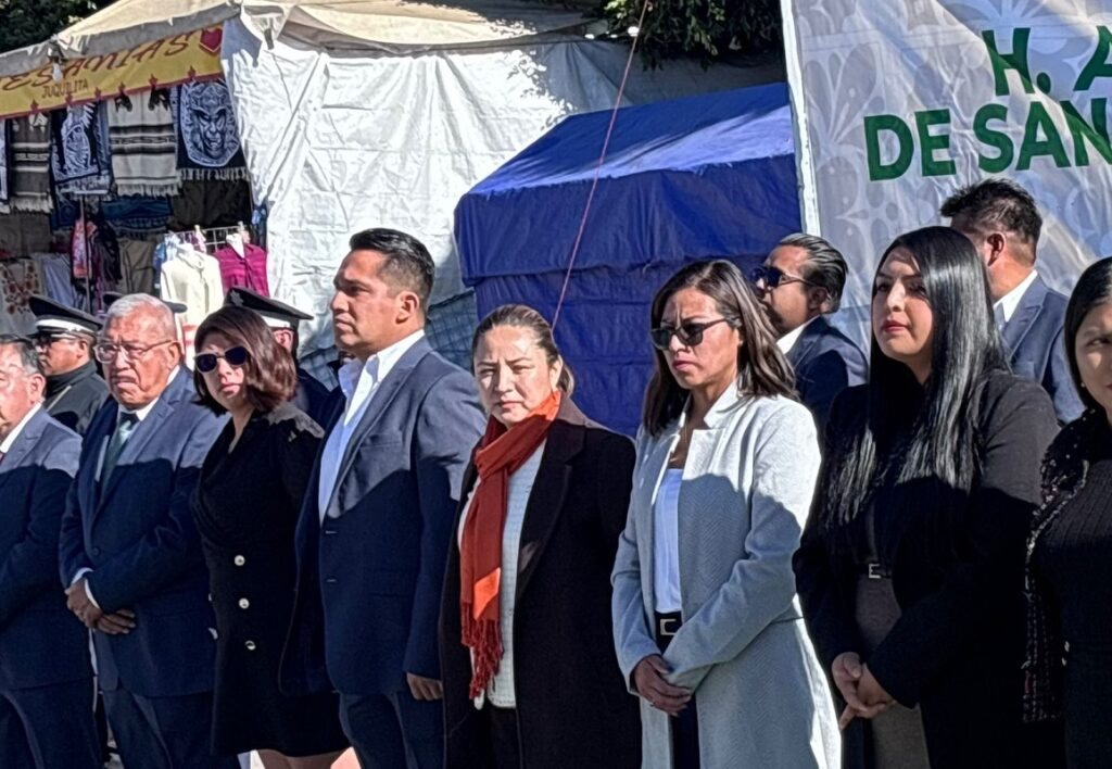 San Pablo del Monte, Tlax; 24 de febrero 2026.- En el marco del Día de la Bandera, autoridades de San Pablo del Monte, encabezadas por la presidenta Ana Lucía Arce Luna, guardaron un minuto de silencio en memoria de los militares caídos el pasado 22 de febrero en cumplimiento de su deber contra la delincuencia.