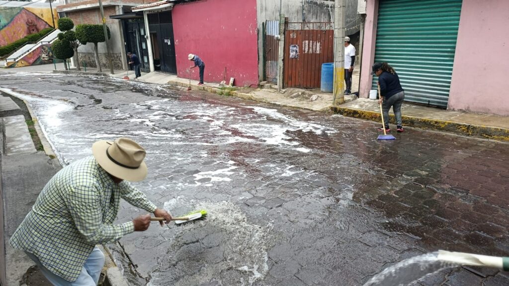 Este fin de semana, el desbordamiento de aguas negras inundó la calle Libertad y afectó a pobladores de la zona, por lo que se realizaron acciones coordinadas con los vecinos para el envío de pipas de agua para la limpieza de la calle afectada.